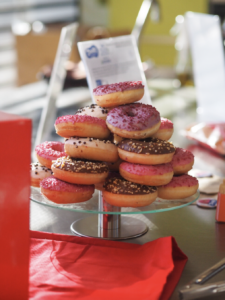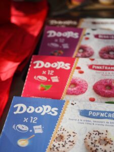 Après avoir goûté des sardines en buvant un café, nous avons ensuite découvert la marque Française Doops. Il s’agit ici de donuts fourrés, faits en France. Initialement proposés pour les professionnels, ils se trouvent maintenant en sachets de 4 dans de nombreux magasins et sous plusieurs parfums : cacaonuts, pinkframboise, pop’ncreme, berrybaie. Ma fille en a eu un pour son goûter et elle ne m’en a pas laissé une miette !