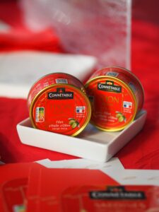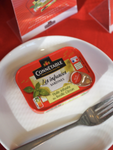 Dès 9h du matin, nous nous sommes laissé tenter par la gamme « les infusés » de Connetable. Et j’ai vraiment apprécié les sardines infusées au piment Jalapeno. Elles sont piquantes sans être brûlantes, le piment relève juste le goût et c’est très agréable. Ici, l’huile vient confire et imprégner les sardines sans les dénaturer. Une autre nouveauté ? Leur thon blanc germon pêche responsable, avec un simple filet d’huile d’olive, pour ceux qui n’aiment pas quand le thon baigne dans l’huile ! Moi, personnellement, je récupère l’huile, mais cette innovation est intéressante pour les repas au bureau par exemple ou pour les repas sur le pouce quand on ne veut pas s’en mettre partout.