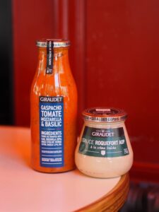 Enfin, une marque découverte l’année dernière, que je voulais absolument retrouver pour ces journées presse : Giraudet. C’est une marque française qui existe depuis 1910, depuis 2012, elle est labellisée Entreprise du Patrimoine Vivant. Ils proposent de nombreux produits tels que des quenelles, des sauces ou encore des soupes. Et pour le Printemps, ils ont sorti donc un gaspacho houmous, un gaspacho tomate mozzarella et une sauce au roquefort. J’ai hâte de tester la sauce roquefort sur une belle tranche de seitan maison !