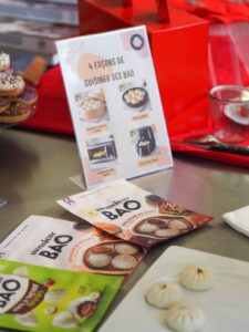Juste à côté, on pouvait également retrouver les produits la nouvelle marque qui cartonne : Monsieur Bao. Fabriqués en île de France, ces baos sont prêts en quelques secondes au micro ondes et se déclinent sous plusieurs goûts : effiloché de poulet (ou de porc), végétarien ou aux légumes.